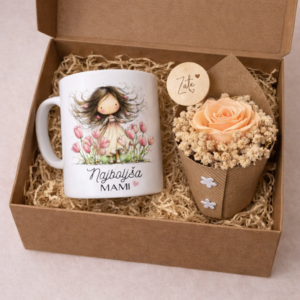 Izdelana iz kakovostnega dvojnega stekla, med katerim so suhe prave rožice – edinstven in čaroben detajl. Ime na skodelici prilagodimo po vaši želji.